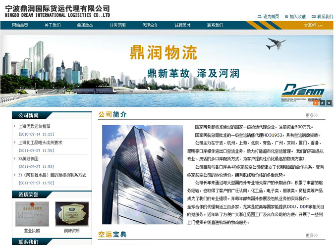 国家商务部核准通过的国家一级货运代理企业,注册资金500万元。 国家民航总局批准的一级空运销售代理HD31953,具有空运铜牌资质。 公司主力在宁波、杭州、上海、北京、青岛、广州、深圳、厦门、香港、昆明等口岸操作进出口空运业务,致力打造超市化空运管理。 我们的宗旨是以专业、灵活的多口岸配货方式,为客户提供性价比最高的物流方案! 公司目前与各口岸共40多家航空公司都建立了长期稳固的合作关系,享有多家航空公司的协议运价,拥有航线和价格的多重优势。 公司长年来通过与大型国内外专业领先客户的长期合作,积累了丰富的服务经验,也取得了客户的广泛认同。化工品、电子类、服装类。商检类等产品成为了我们的专业强项。并每年都有国外参展及包机业务的实际操作。全球合作的代理有近三百多家,尤其是欧美等国家能提供DDU、DDP等相关目的港服务。近年味了方便广大浙江范围工厂及合作公司的方便,开展了一些列上门提货专线直送机场的物流服务。