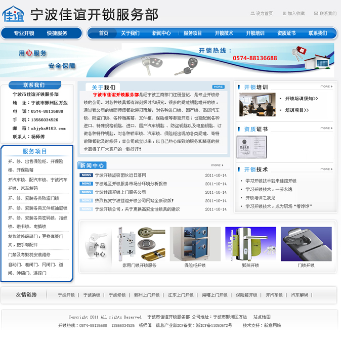 宁波佳谊开锁服务部是经宁波工商部门注册登记、是专业开锁修锁的公司。对各种锁具都有深刻探讨和研究。很多的疑难钥匙难开的锁,通过我公司的锁匠师傅都能迎刃而解。对各种进口锁、国产锁、高级汽车锁、防盗门锁、各种档案箱、文件柜、保险柜等都能开启;也能配到各种进口、特殊规格钥匙、进口、国产汽车钥匙 、防盗钥匙以及电脑钥匙、订做各种特种钥匙。对各种轿车锁、汽车锁、保险柜出现的各类疑难、奇特故障都能及时修好,本公司成立以来,以自己热心细致的服务和精湛的技术赢得了广大客户的一致好评!