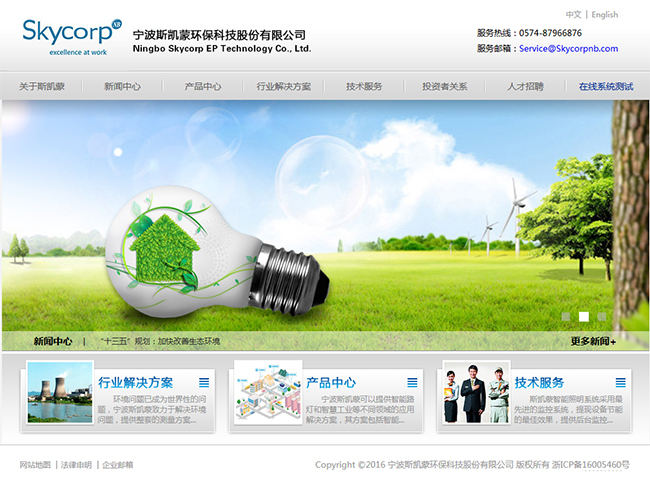 宁波斯凯蒙环保科技股份有限公司(Ningbo Skycorp EP Technology Co., Ltd.),创立于2011年4月,坐落于浙江省宁波市国家高新区研发园;是专业从事光伏发电、智能照明、智慧环保及相关监测服务业务的高科技技术企业。