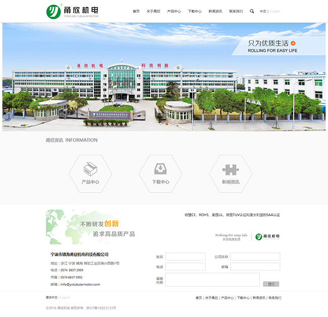 机电制造类网站案例——宁波市镇海甬欣机电科技有限公司