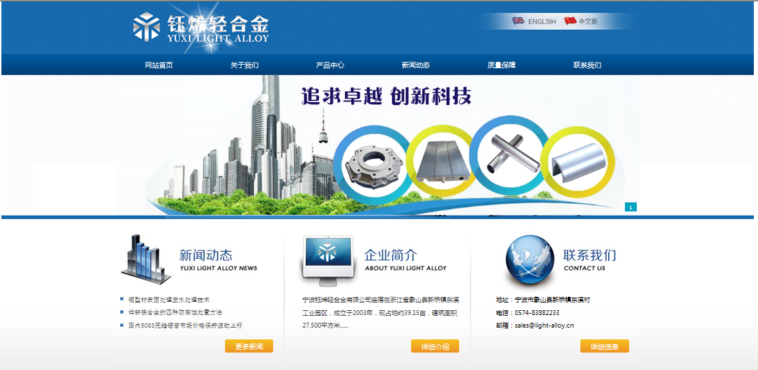 宁波钰烯轻合金有限责任公司座落在浙江省象山县新桥镇东溪工业园区,成立于2003年,现有厂房建筑面积约27,500平方米。本厂以科技为先导,采用先进设备加工,工艺成熟,质量可靠。主要产品包括镁合金挤压型材,铸造件以及各种镁合金制成品和半成品,以及铝合金低压铸造件。公司自成立以来,在挤压和铸造方面积累了大量经验并不断完善和提成自身的技术能力和管理水平。先后取得了“国家高新技术企业”荣誉称号,并严格根据ISO9001,14000,18000标准执行安全和生产把控流程。